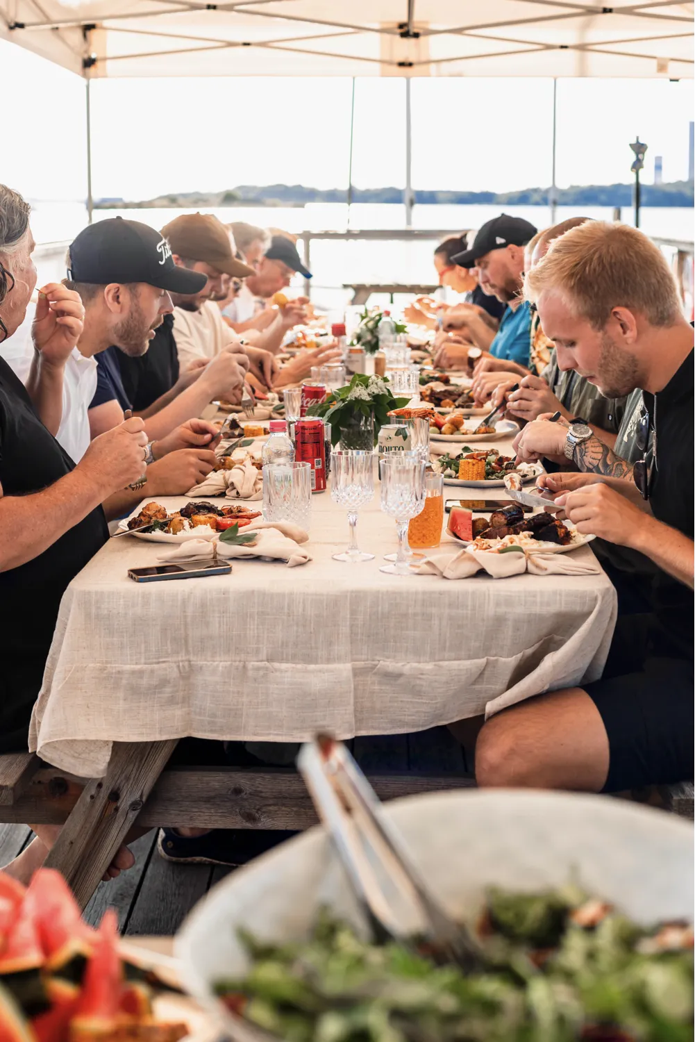Vi tar emot både mindre och medelstora sällskap, för sittande middagar eller mer avslappnade tillställningar vid bryggan.